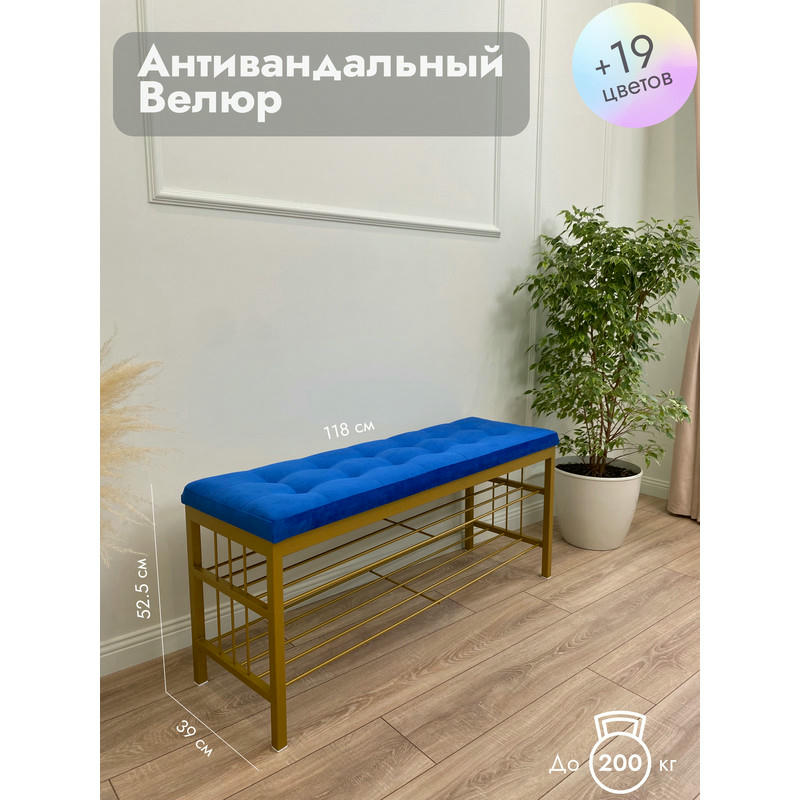 Банкетка Сканди-120-2-полочная (синий/золото)