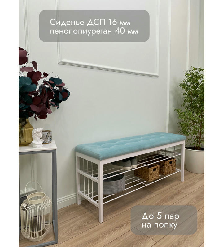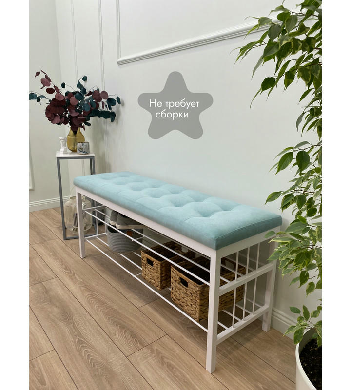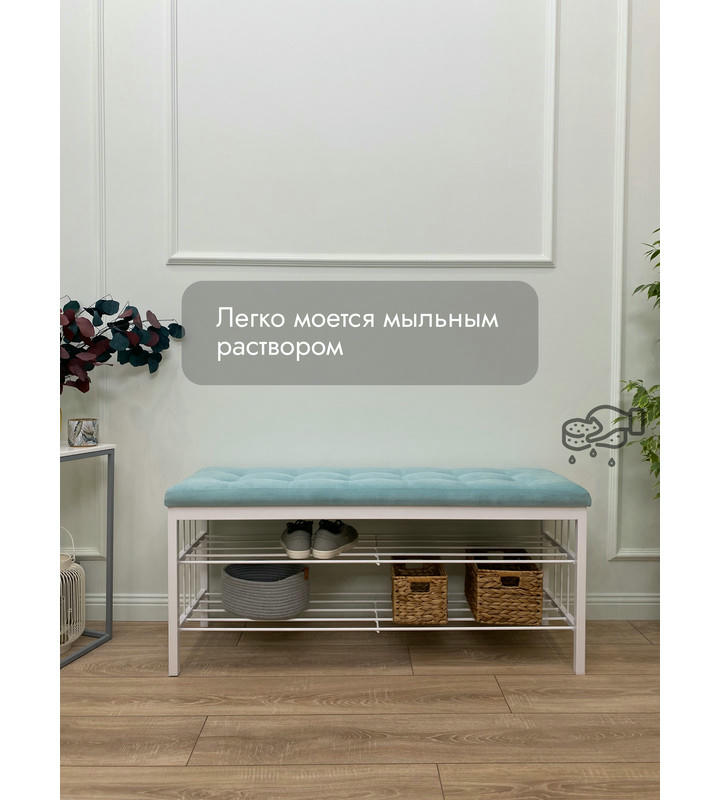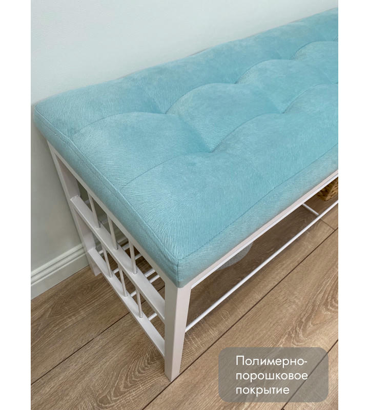 Банкетка Сканди-120-2-полочная (светло-бирюзовый/белый)