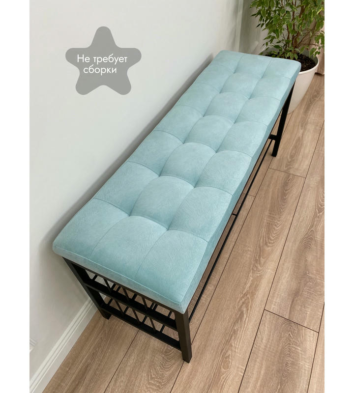 Банкетка Сканди-120-2-полочная (светло-бирюзовый/черный)