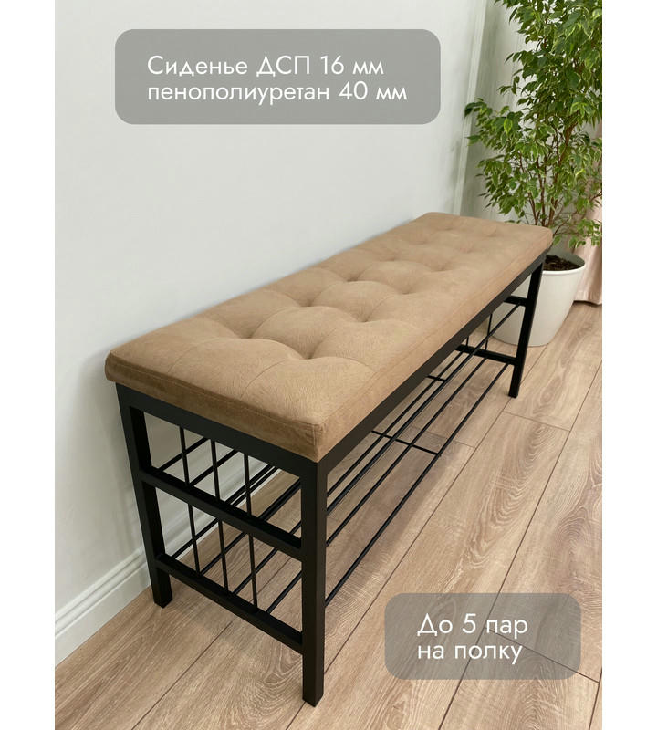 Банкетка Сканди-120-2-полочная (светло-коричневый/черный)