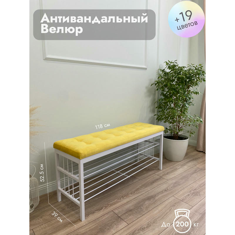 Банкетка Сканди-120-2-полочная (желтый/белый)