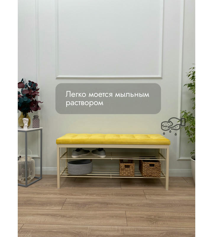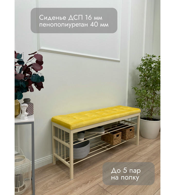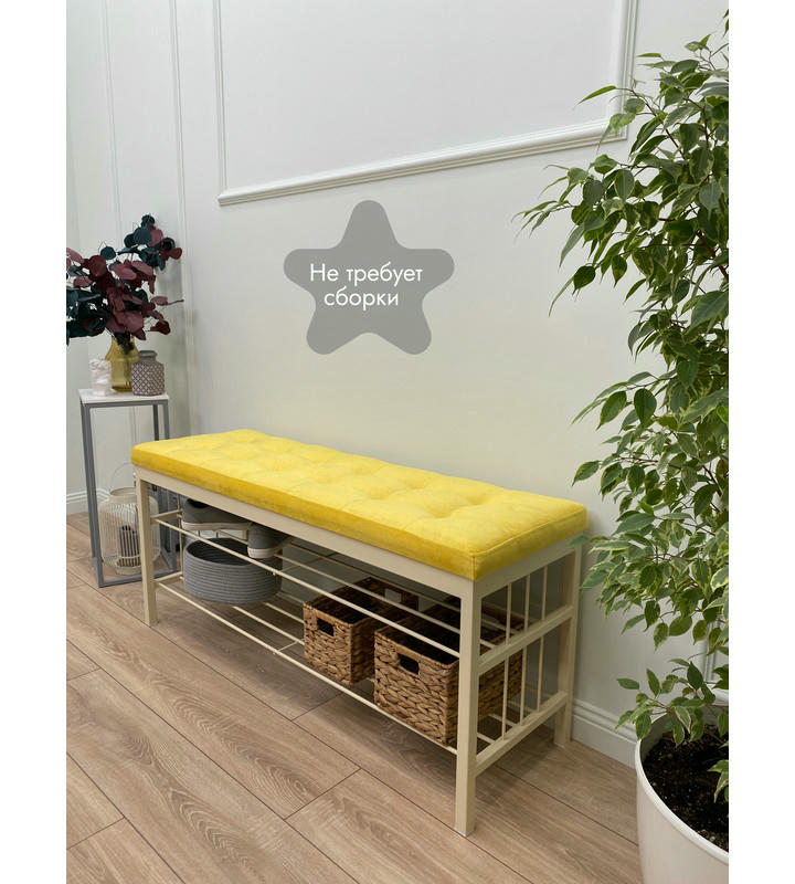 Банкетка Сканди-120-2-полочная (желтый/бежевый)