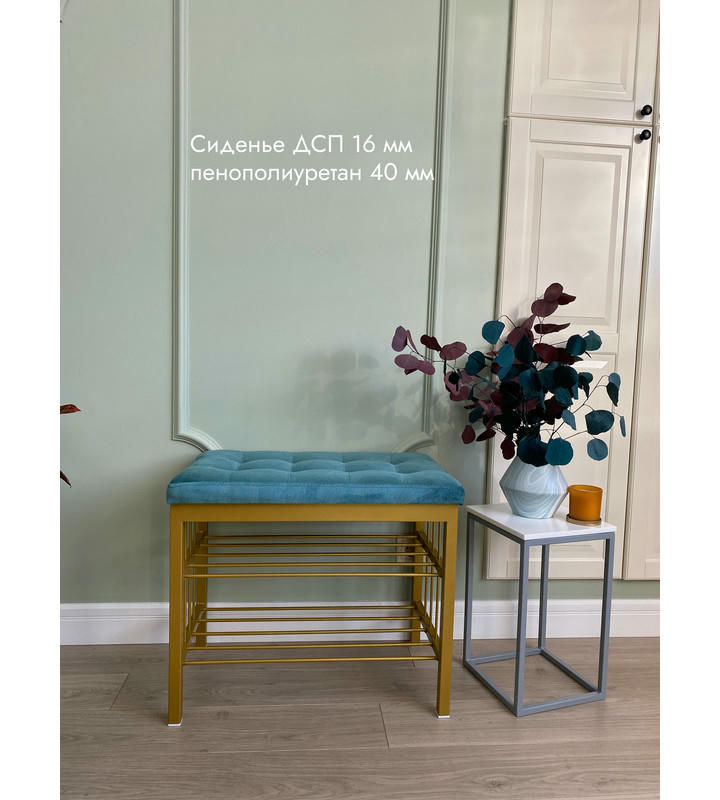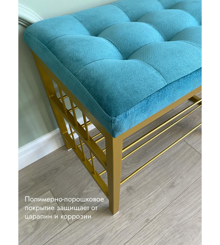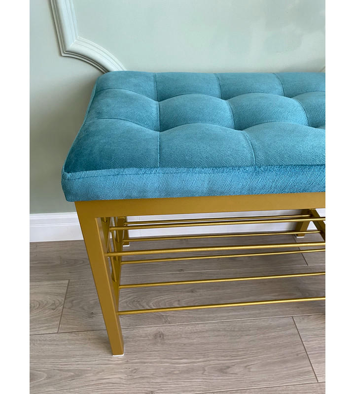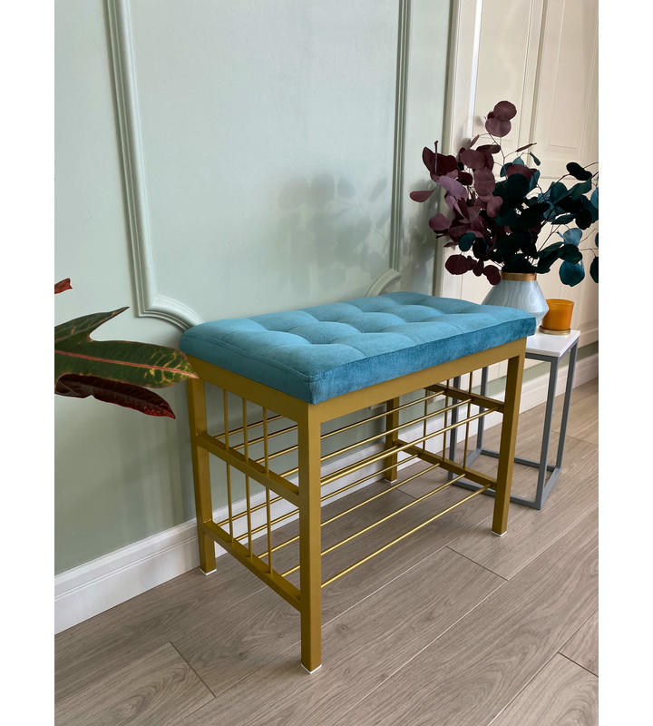 Банкетка Сканди-60-2-х полочная (бирюзовый/золото)