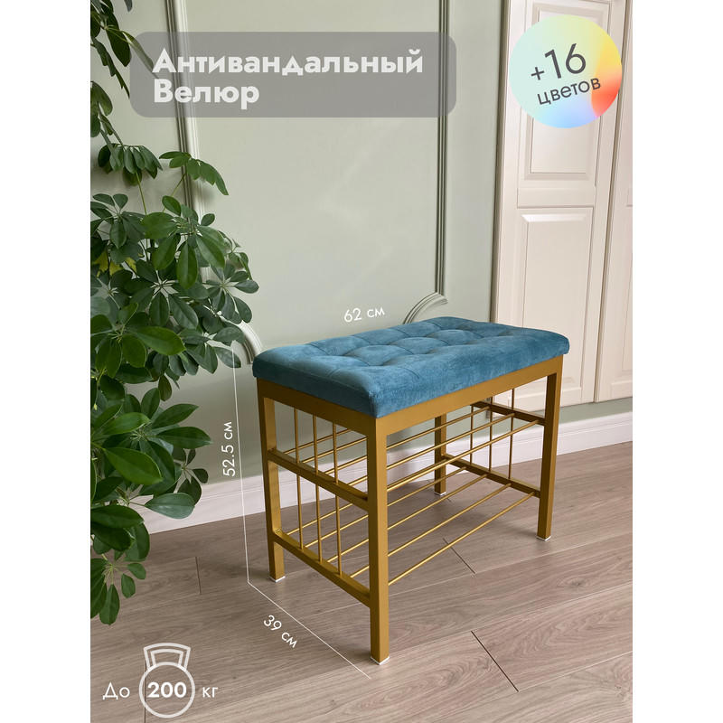 Банкетка Сканди-60-2-х полочная (бирюзовый/золото)
