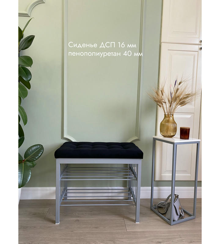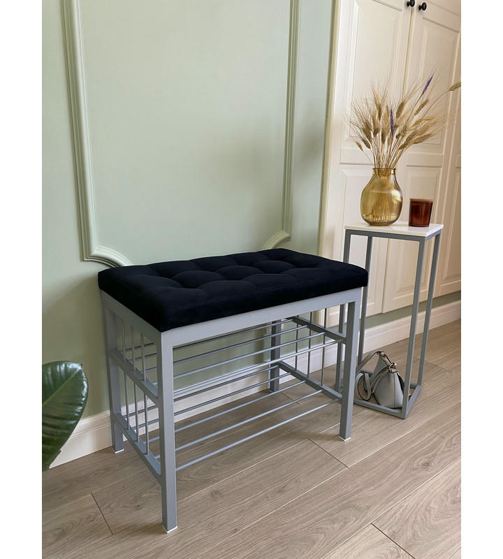 Банкетка Сканди-60-2-х полочная (черный/серый)