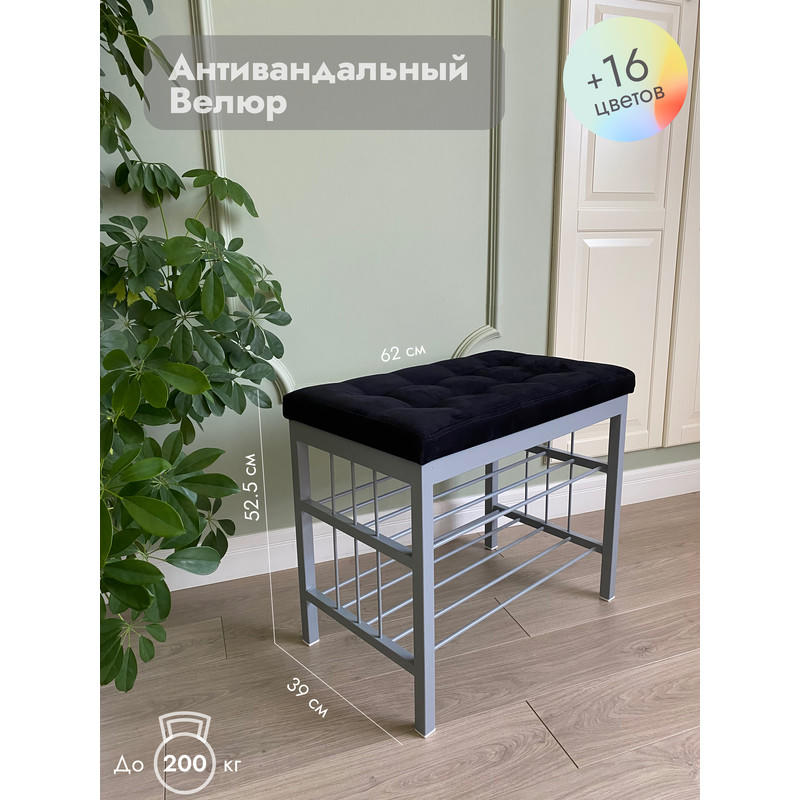 Банкетка Сканди-60-2-х полочная (черный/серый)