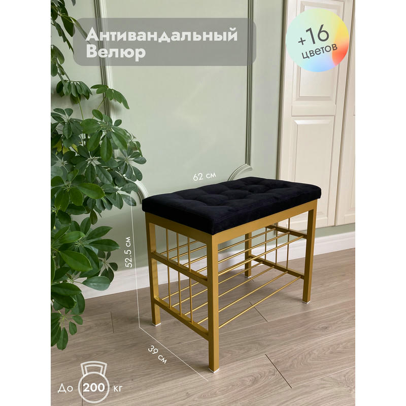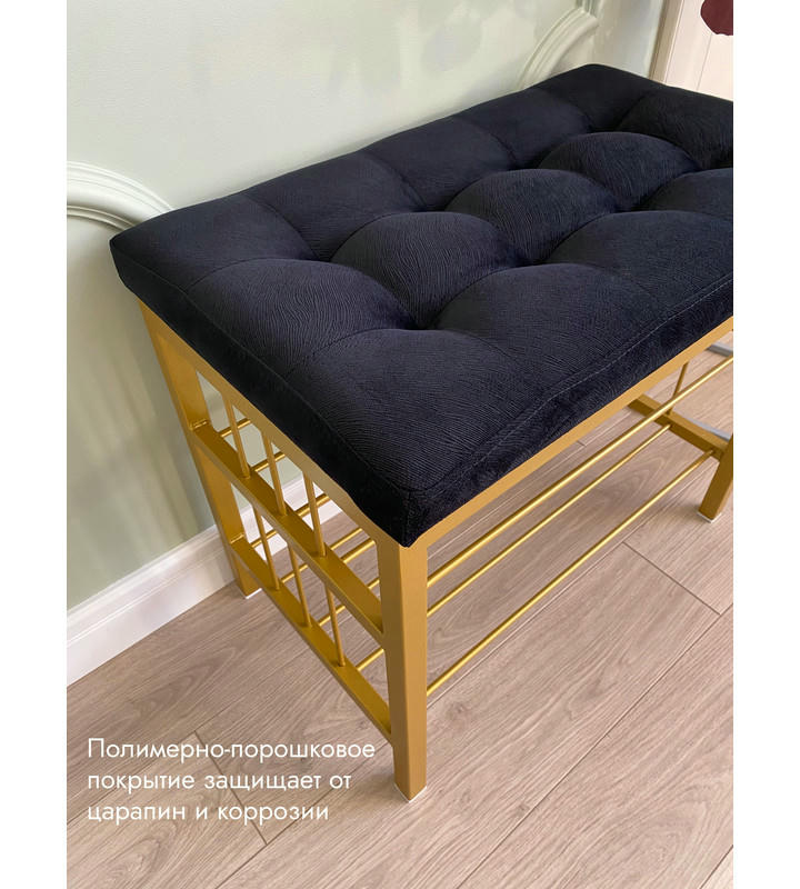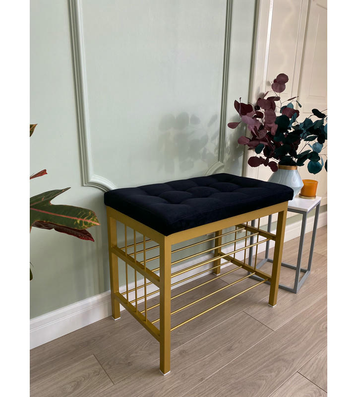 Банкетка Сканди-60-2-х полочная (черный/золото)