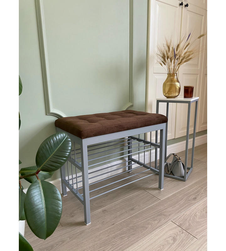 Банкетка Сканди-60-2-х полочная (коричневый/серый)