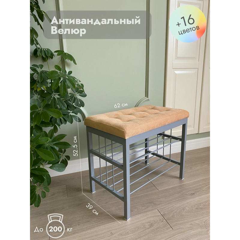Банкетка Сканди-60-2-х полочная (персиковый/серый)
