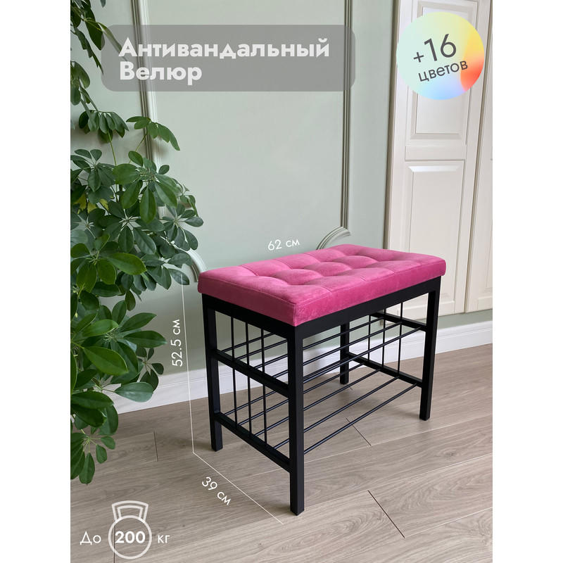 Банкетка Сканди-60-2-х полочная (розовый/черный)