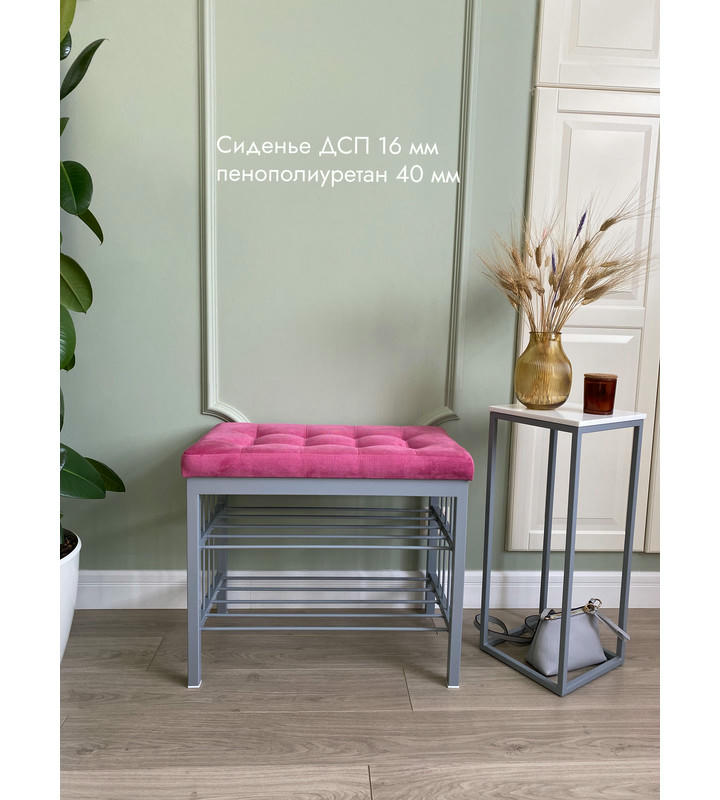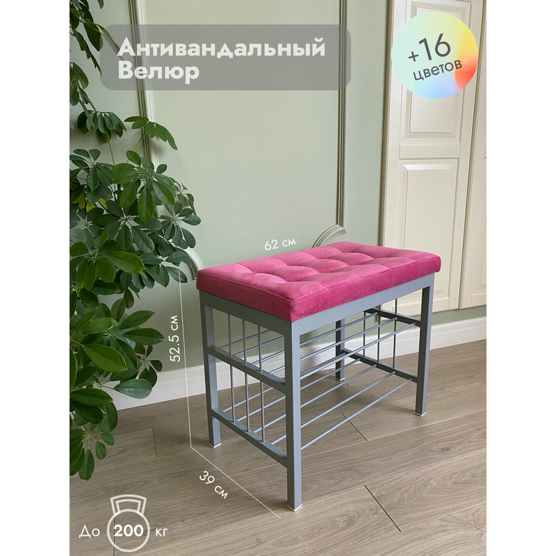 Банкетка Сканди-60-2-х полочная (розовый/серый)