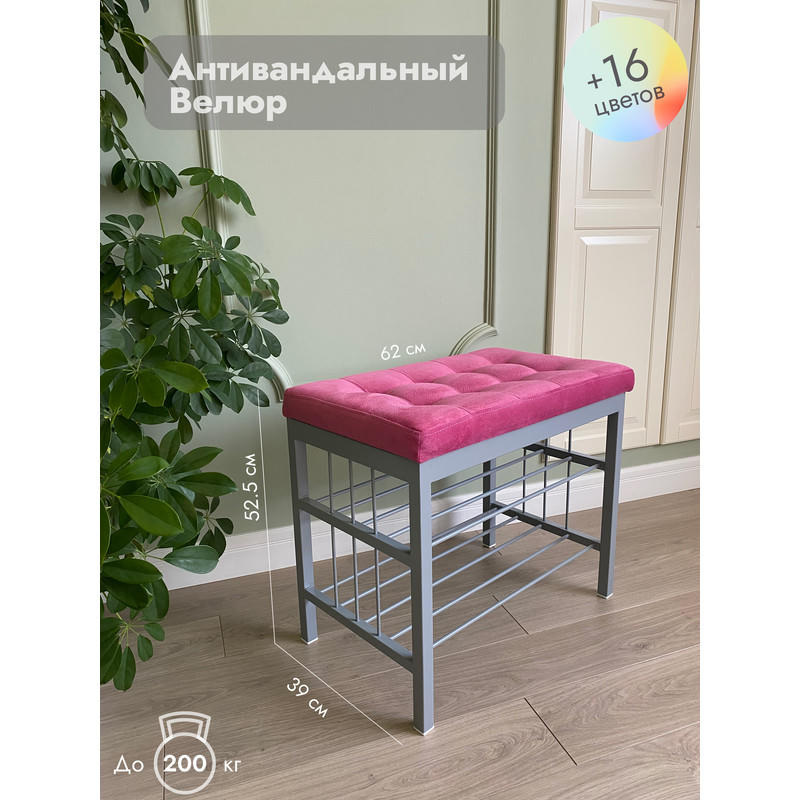 Банкетка Сканди-60-2-х полочная (розовый/серый)