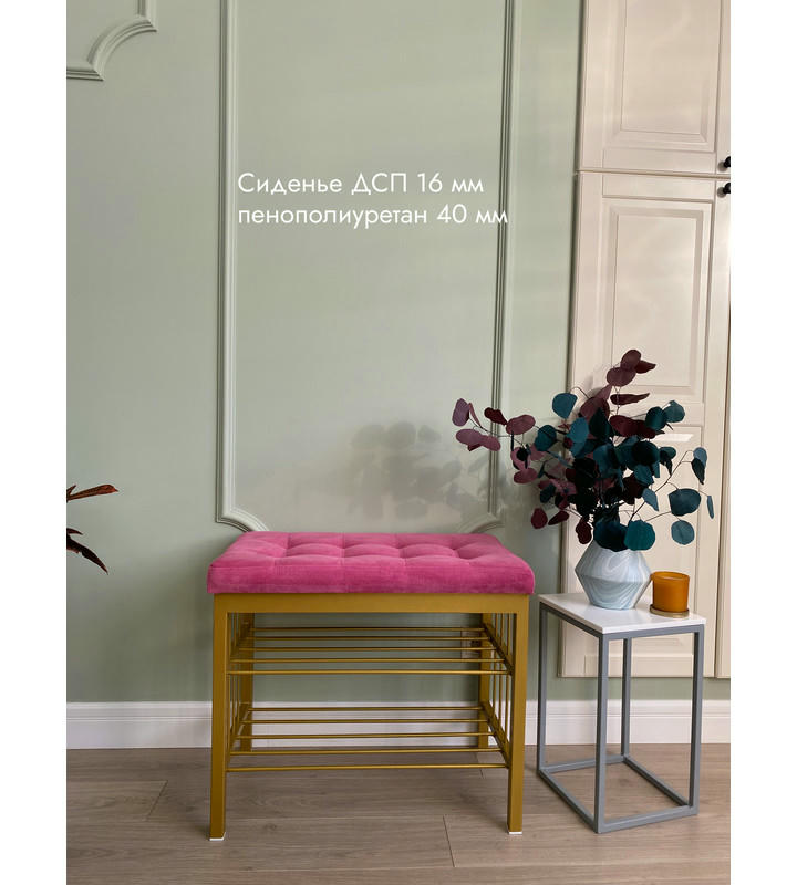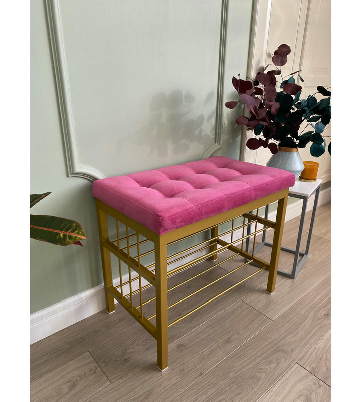 Банкетка Сканди-60-2-х полочная (розовый/золото)