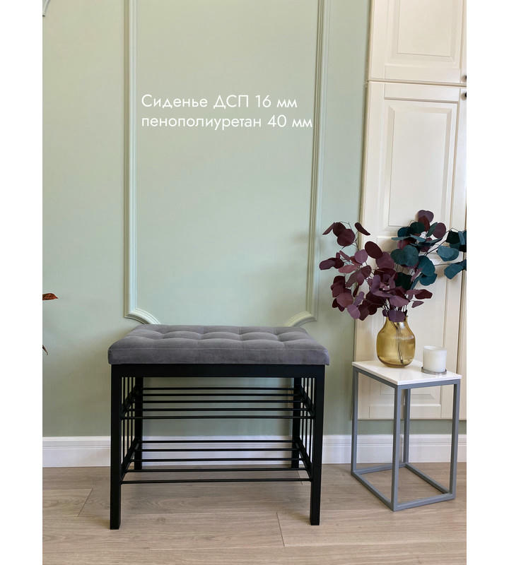 Банкетка Сканди-60-2-х полочная (серый/черный)