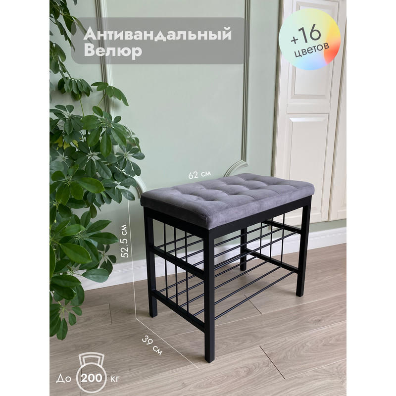 Банкетка Сканди-60-2-х полочная (серый/черный)