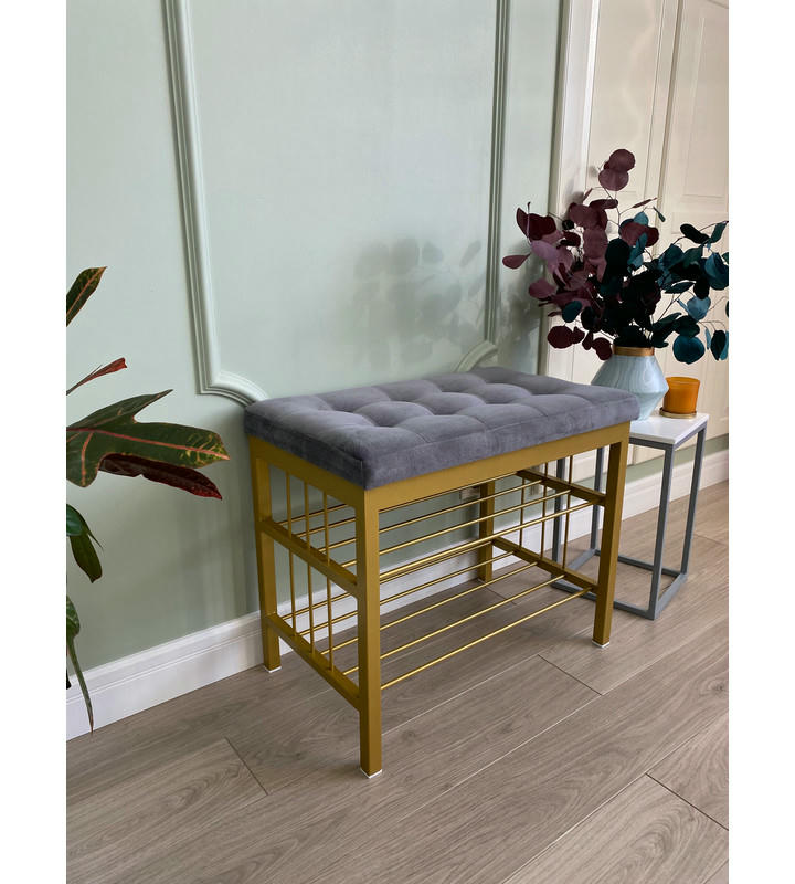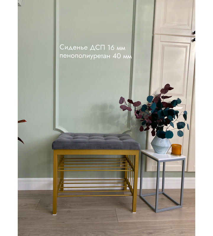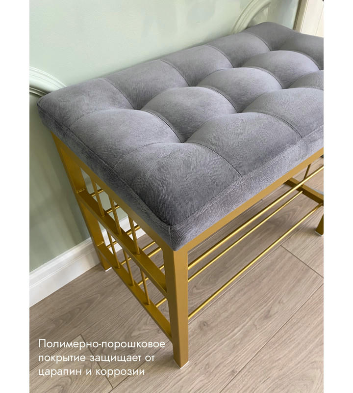 Банкетка Сканди-60-2-х полочная (серый/золото)