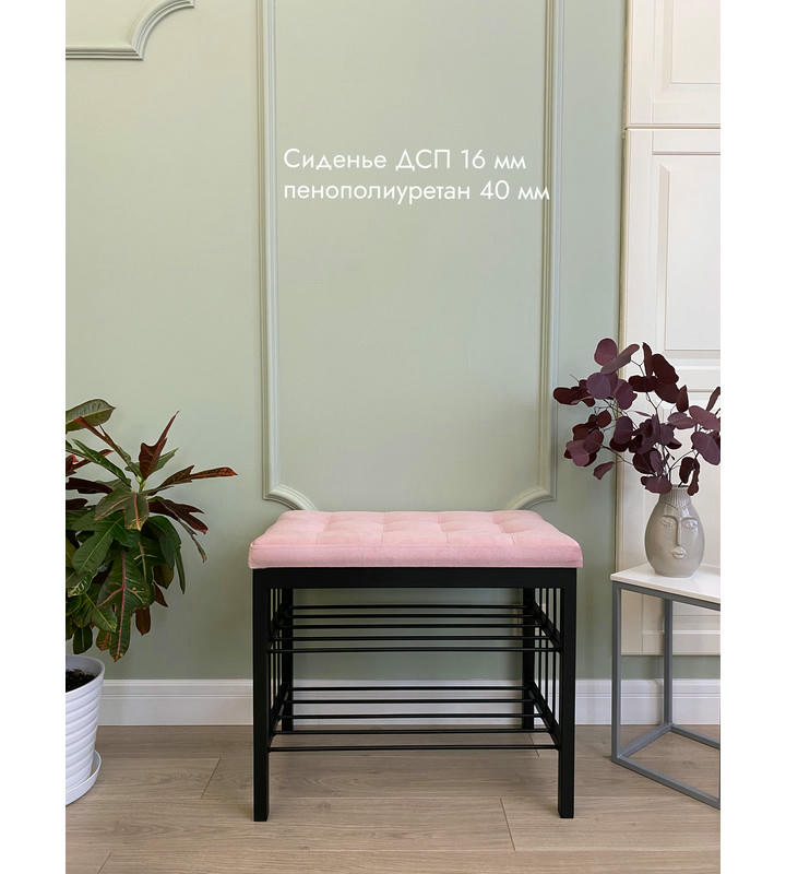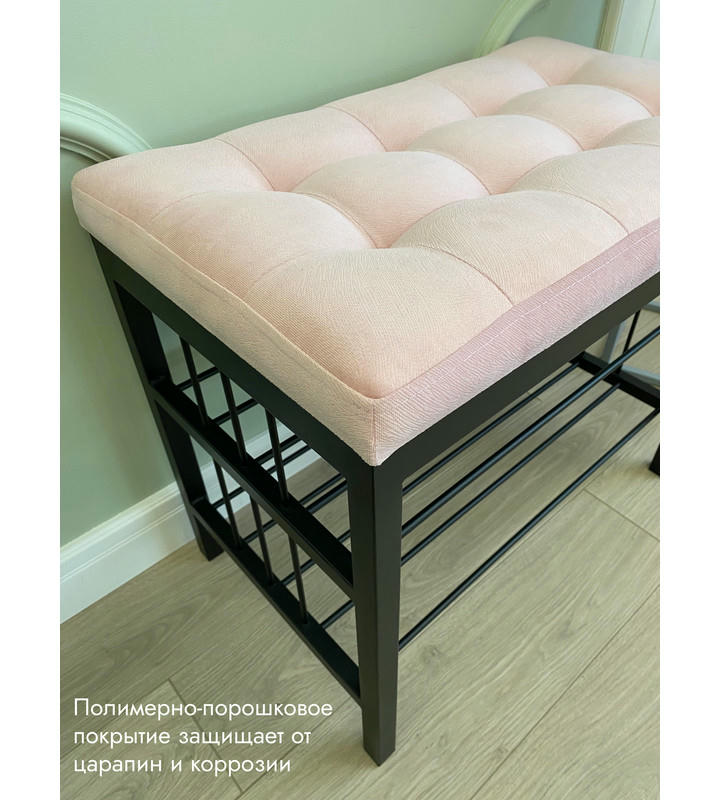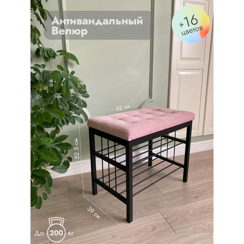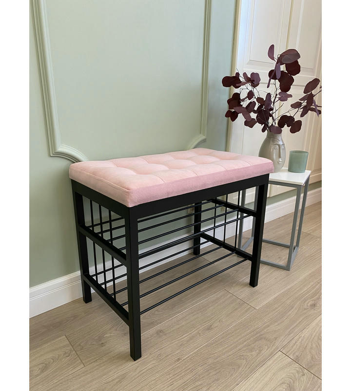 Банкетка Сканди-60-2-х полочная (светло-розовый/черный)