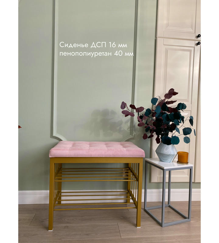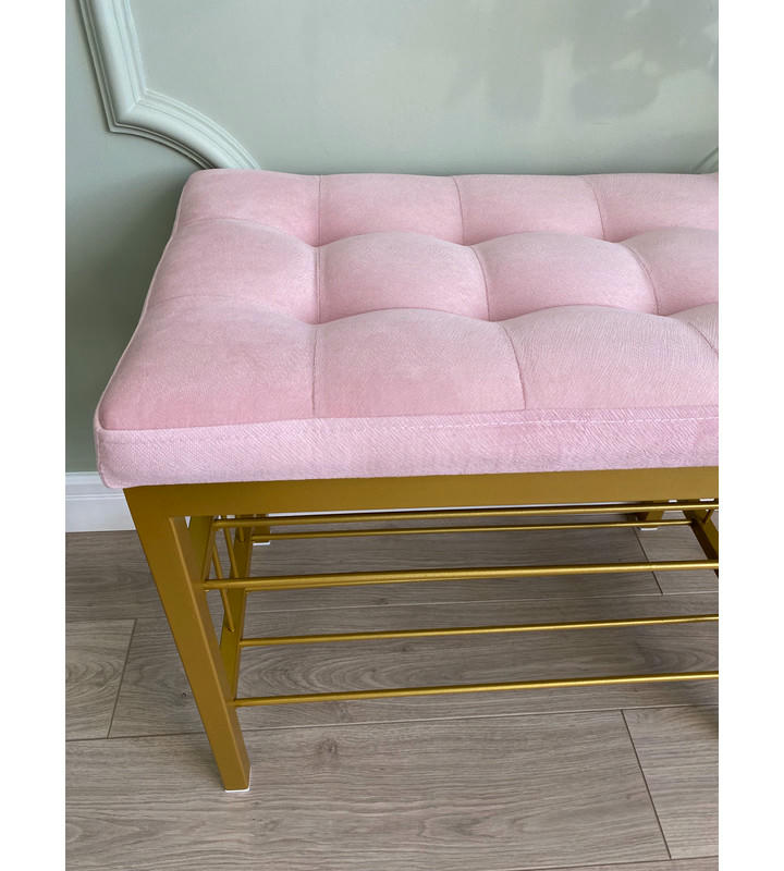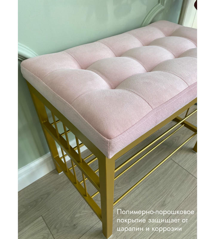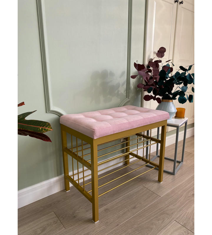 Банкетка Сканди-60-2-х полочная (светло-розовый/золото)