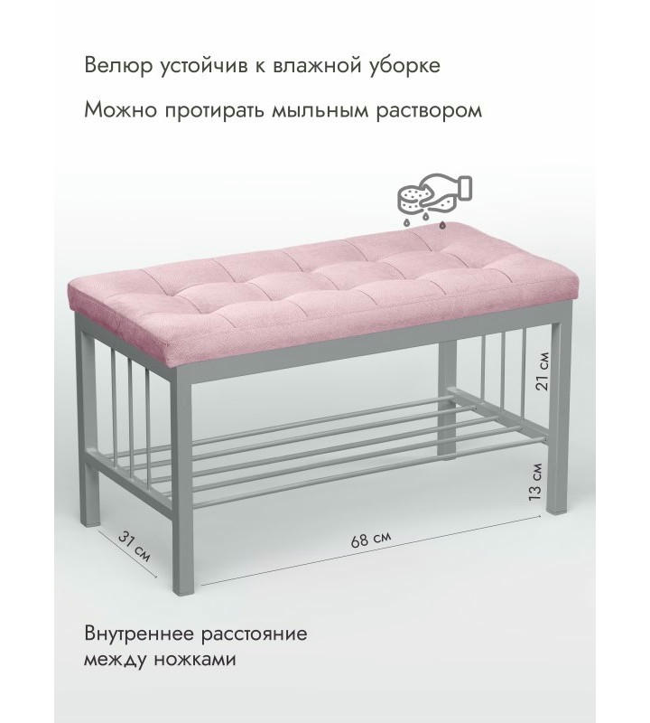 Банкетка Сканди-76-1 (светло-розовый/серый)