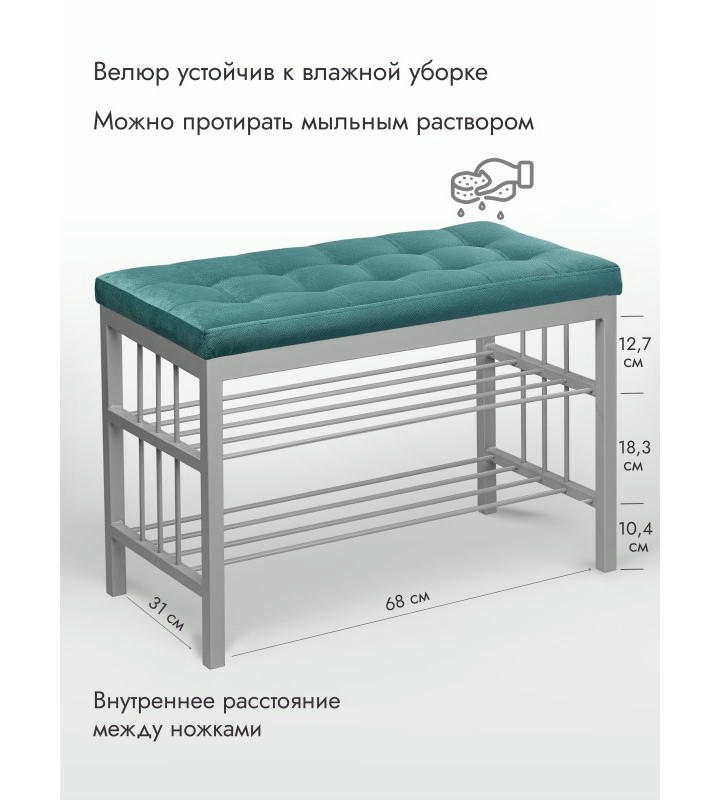 Банкетка Сканди-76-2 (бирюзовый/серый)