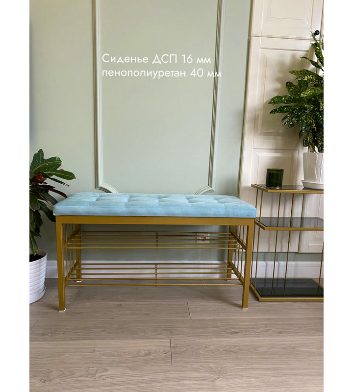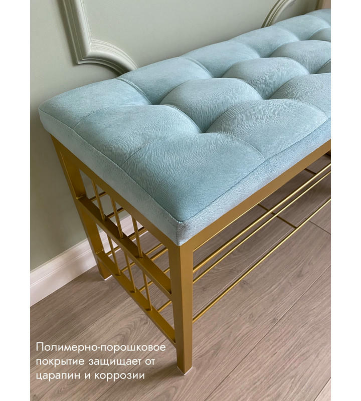 Банкетка Сканди-96-2 (светло-бирюзовый/золото)