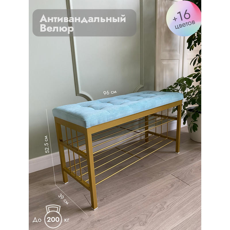 Банкетка Сканди-96-2 (светло-бирюзовый/золото)