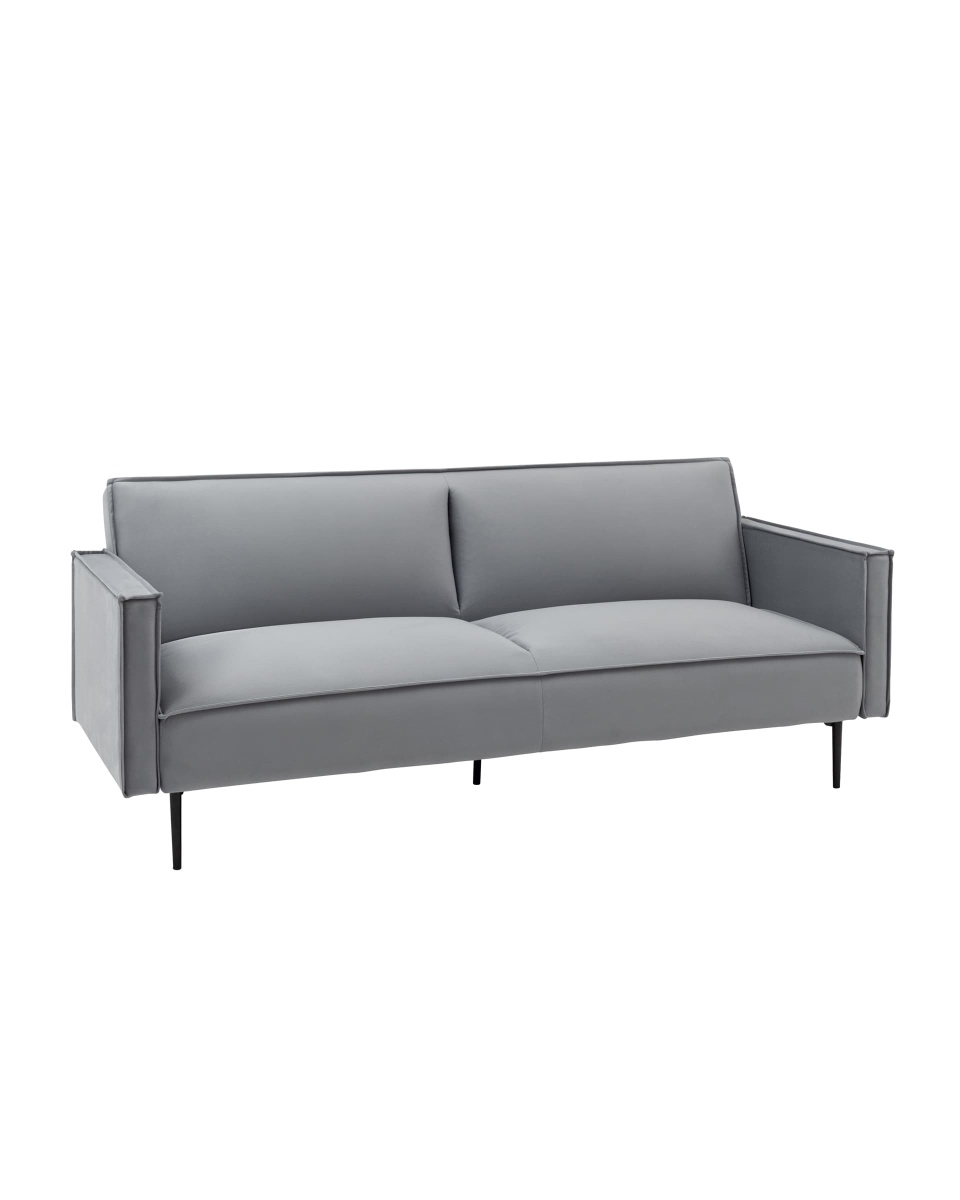 Диван прямой с подлокотниками Кассель велюр серый раскладной ножки венге металл