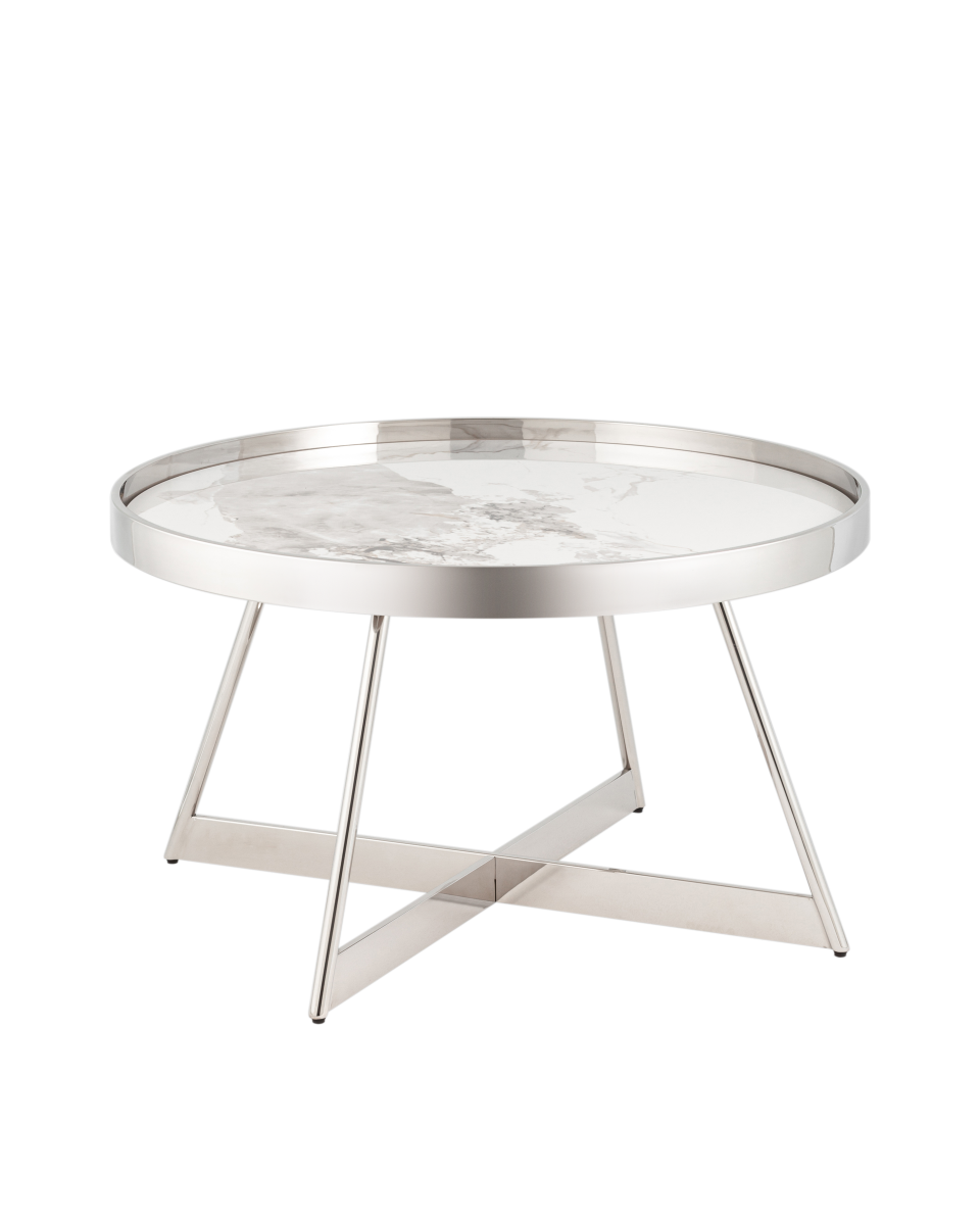 Журнальный столик Гера 80*80см белая керамика сталь серебро