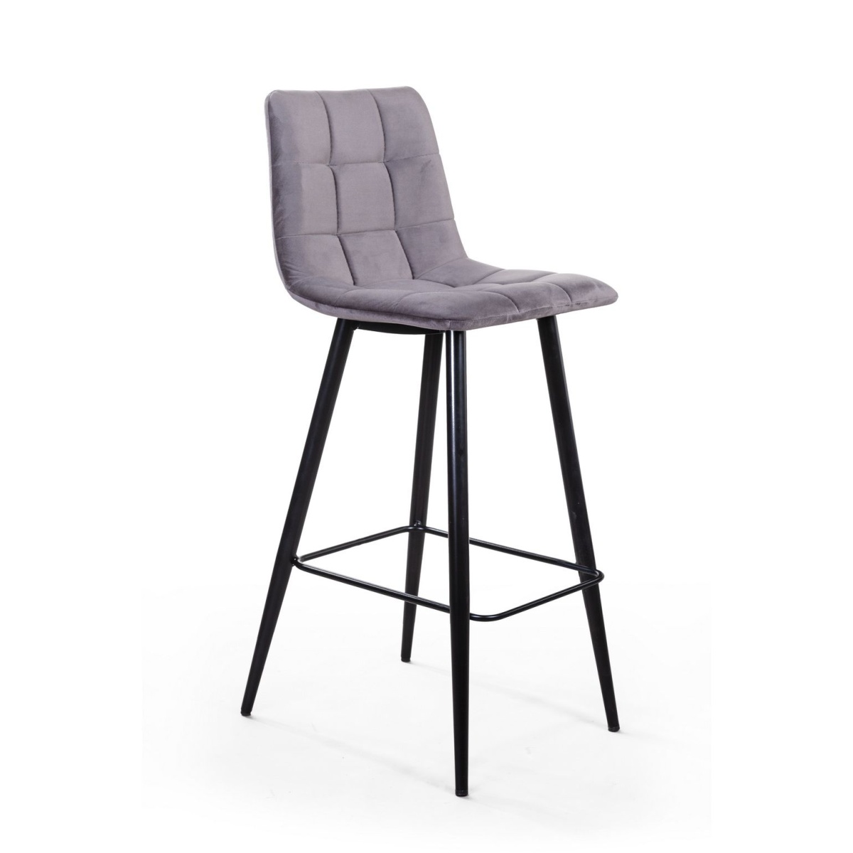 Стул барный Уно, бархат светло-серый 26 / чёрный конус