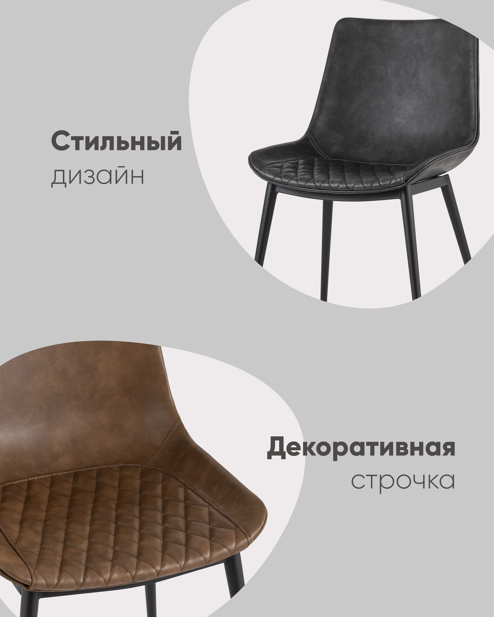 Стул кухонный TEXAS мягкая обивка из экокожи, цвет коричневый, ножки черные