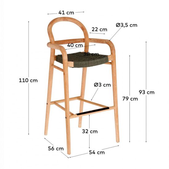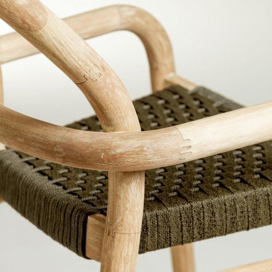 Стул Лесной высотой 110 см - Предмет ручной работы из эвкалиптового дерева с натуральной отделкой. Каждый стул имеет свои уникальные прожилки и оттенки, благодаря тому, что он из цельного дерева, поэтому он эксклюзивен и неповторим. Для создания конструкции также использовались ручные методы столярных изделий, такие как гибка паровой древесины. Стул серо-зеленого цвета также оплетен вручную, сочетая круглую и плоскую веревку, что делает его более равномерным и устойчивым.
