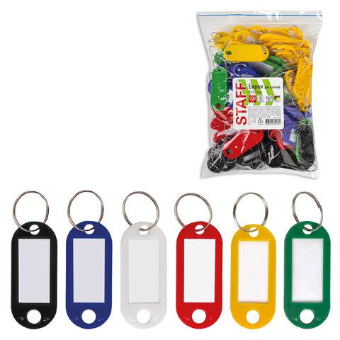 Бирки для ключей КОМПЛЕКТ 100 шт., длина 52 мм, инфо-окно 32х15 мм, цвет ассорти, STAFF, 237730