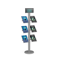 Здесь достаточно места, чтобы разместить до 48 каталогов толщиной 5 мм. А верхний фриз как раз предназначен для названия вашей компании или события. Просто распечатайте желаемое изображение и вставьте в рекламное поле.