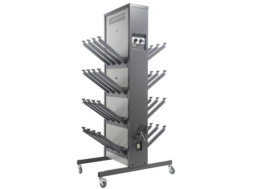 Принцип работы заключается в нагнетании теплого воздуха внутрь обуви через патрубки. Влажная обувь навешивается на расположенные на корпусе стойки кронштейны, через которые подается теплый воздух. Таким образом, конвекция воздуха происходит непосредственно во внутренней части ботинка, что существенно ускоряет процесс сушки. Каждый патрубок для обуви снабжен инерционным клапаном, перекрывает подачу воздуха, если ботинок не одет.