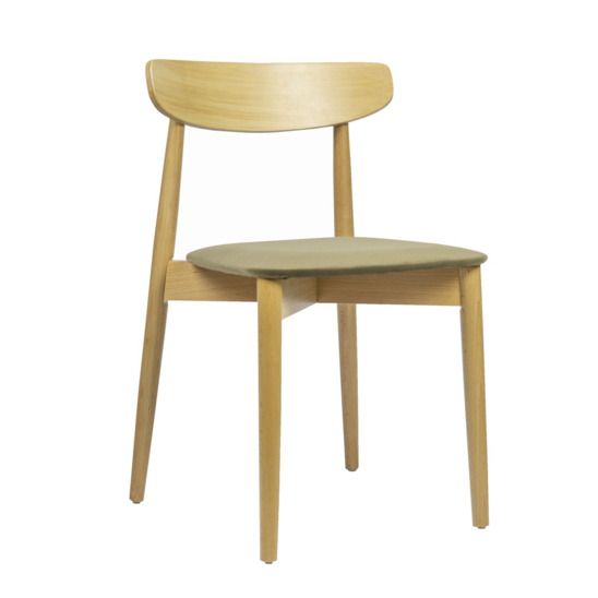 Каркас выполнен из массива бука и имеет мягкое сидение, так же в спинке применены гнутоклееные детали что придает древесине большую стабильность во время эксплуатации.