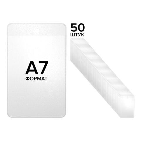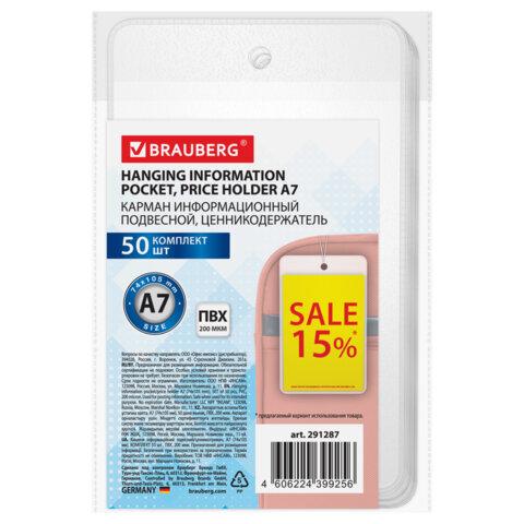 Карман информационный подвесной, ценникодержатель А7, КОМПЛЕКТ 50шт., ПВХ, BRAUBERG, 291287