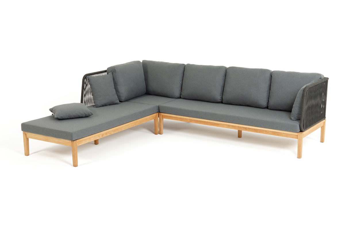"Каталония" диван модульный плетеный из роупа, основание дуб, роуп темно-серый круглый, ткань темно-серая 027цвет Темно-серый