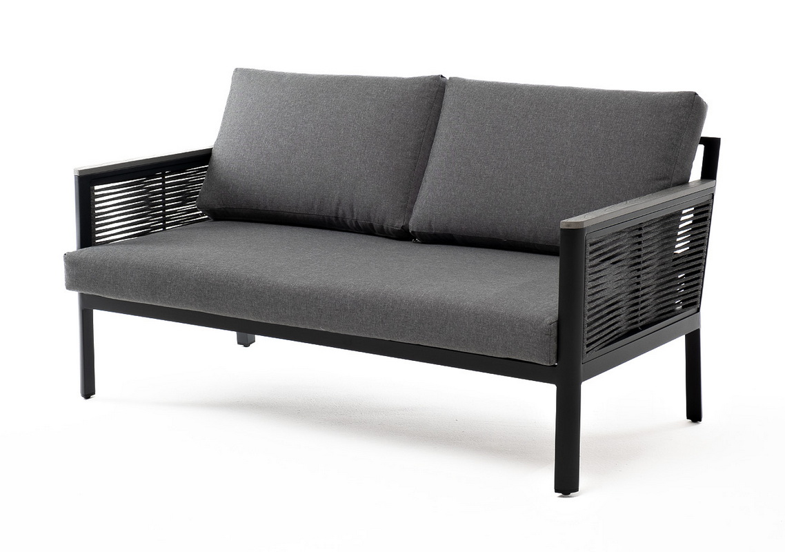 "Сан Ремо" диван 2-местный плетеный из роупа, каркас алюминий темно-серый, роуп серый, ткань сераяцвет Серый