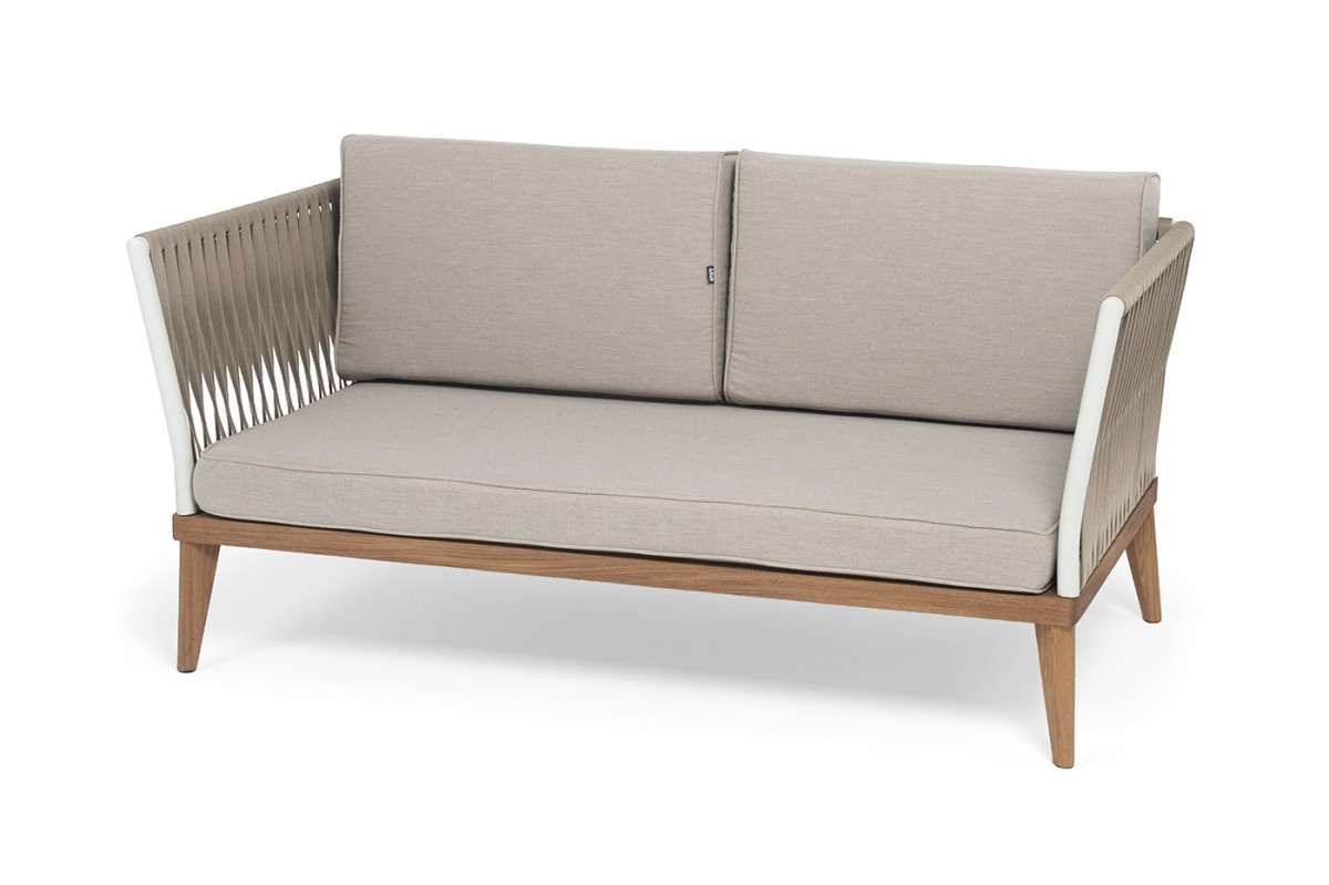 "Касабланка" диван 2-местный плетеный из роупа, основание дуб, каркас алюминий светло-серый (RAL7035) муар,роуп серо-коричневый 23мм,ткань бежеваяцвет серо-коричневый