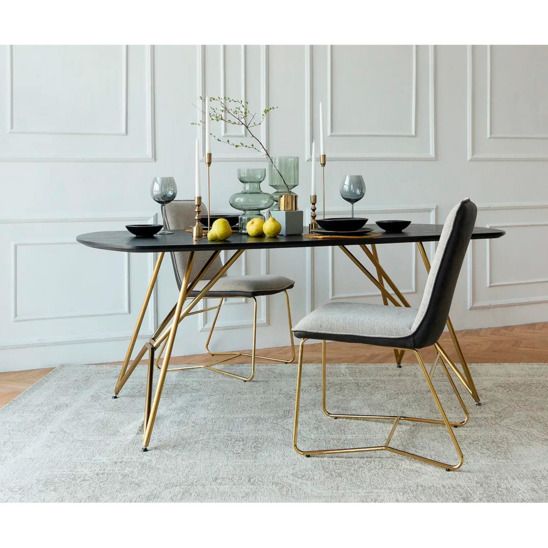 Изящный обеденный стол Dario для Вашей кухни. Теплый золотистый оттенок привлекает взгляд, металлическая отделка ловит солнечные блики и делает атмосферу на кухне свежей и радостной, создает настроение ранним солнечным утром. Поиграйте с пространством, дополнив гарнитур дизайнерскими стульями от ogogo.ru и необычными деталями.
