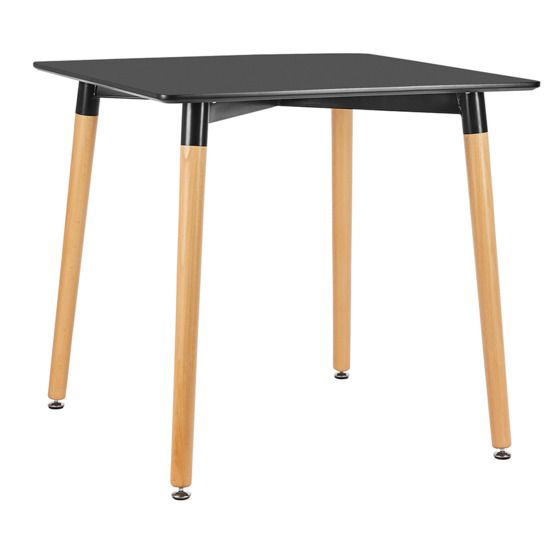 Кухонный стол Summer в черном цвете и квадратной столешницей отлично подойдет для любого интерьера. Его оттенок подчеркнет темный дизайн или станет ярким акцентом в светлом. Столешница выполнена из МДФ, что увеличивает срок ее использования и облегчает ежедневный уход. Основание обеденного стола металлическое, что делает его прочным и надежным. Ножки из бука сочетаются с другими предметами мебели