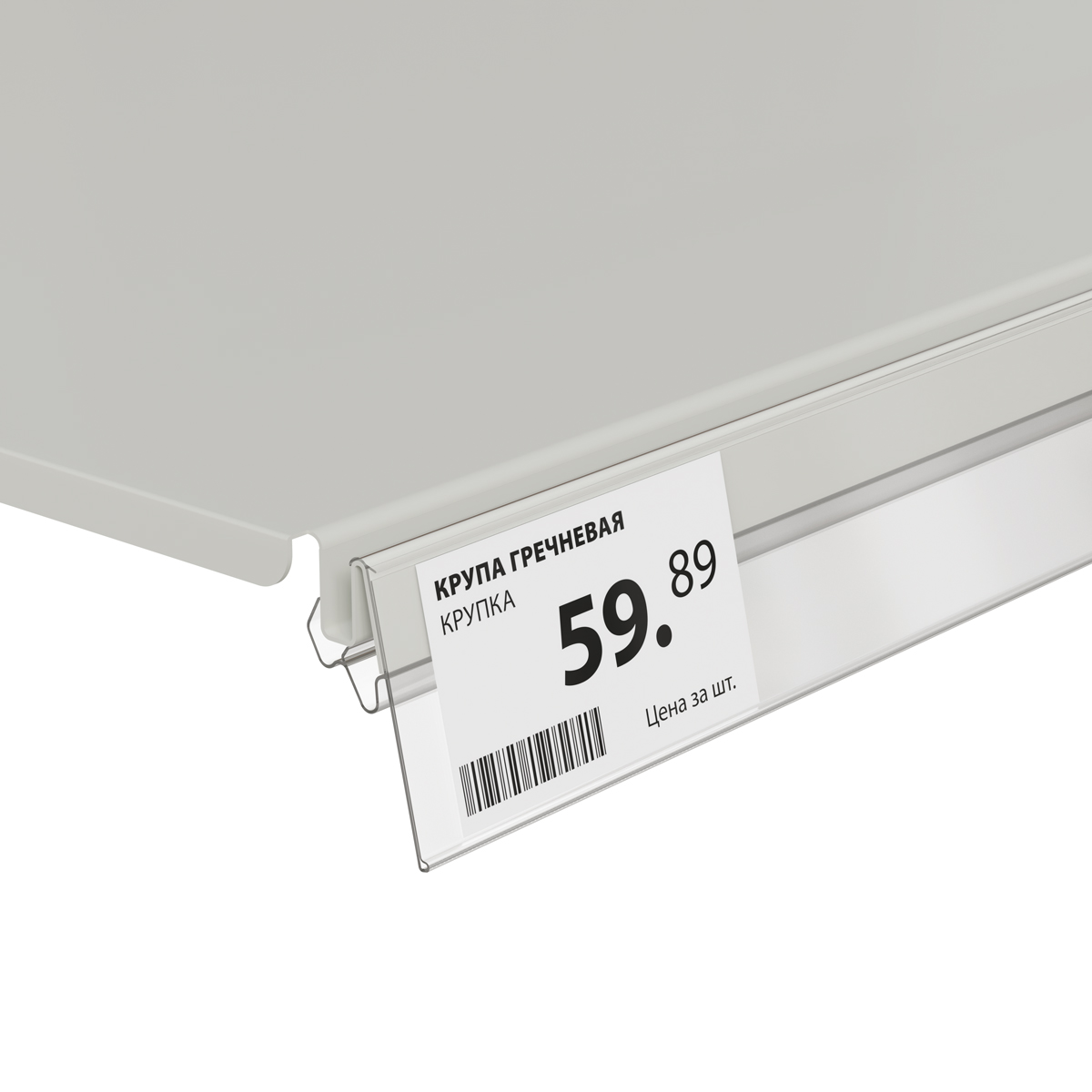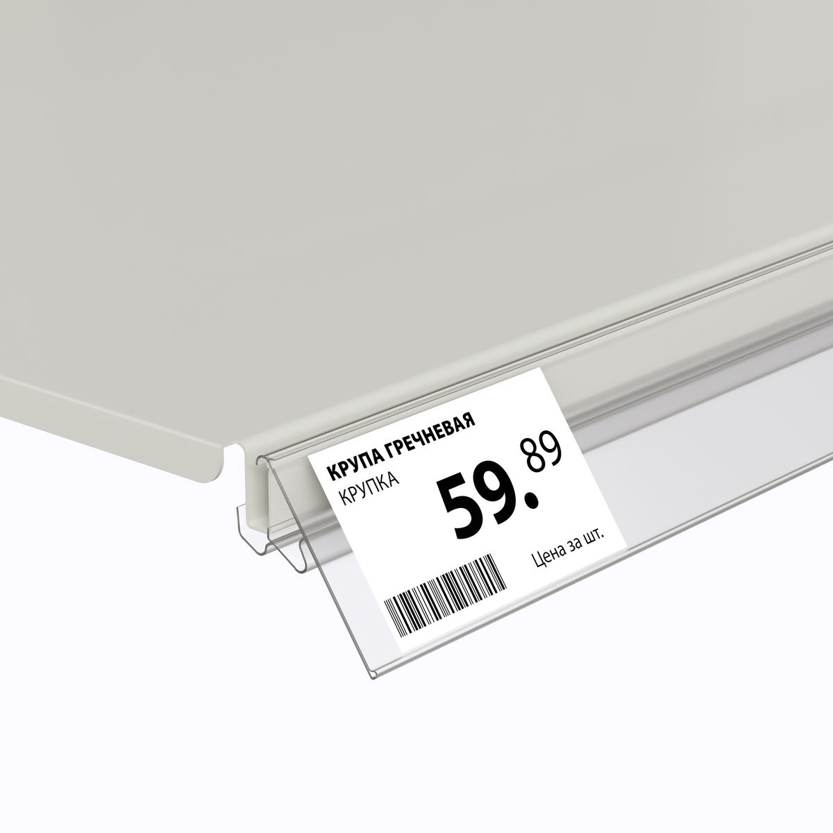 Полочный двухпозиционный ценникодержатель LST60 прозрачного цвета для стеллажей отечественных и зарубежных производителей: Зенит, КС Русь, KIFATO, MAGO, Евромаркет, Штрих-М, TEGOMETALL, МариХолодМаш, Grispy/ Stahler/ Italfrost/Symphony, БорТоргТехМаш (БЗТО).