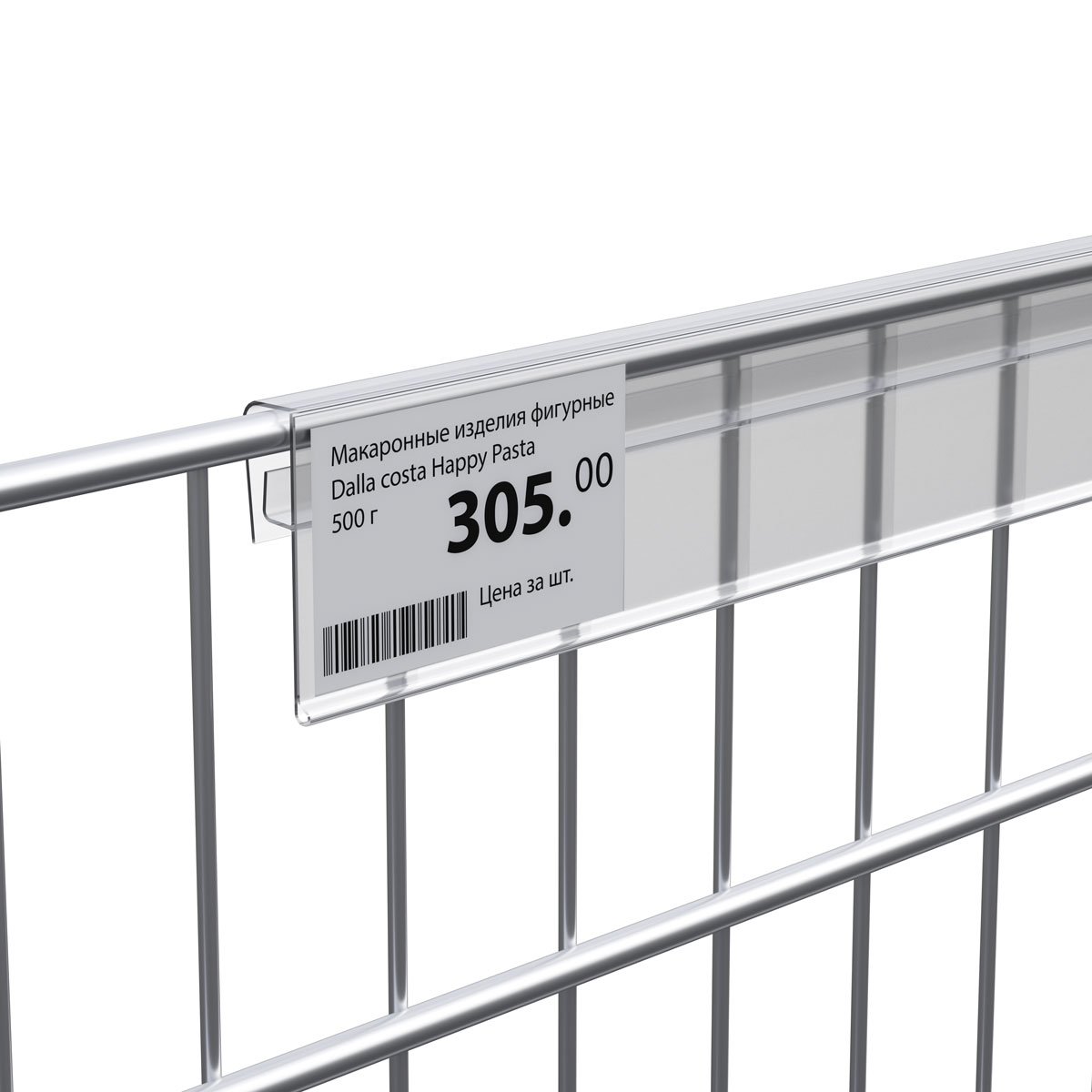 Ценникодержатель надежно фиксируется на полке благодаря плотной посадке.