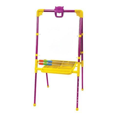 Мольберт растущий двусторонний BRAUBERG NIKA KIDS предназначен для развития творческих способностей ребенка и обустройства игрового пространства в детских учреждениях и дома.Поверхность мольберта белого цвета предназначена для рисования специальным маркером для белой доски, а также для размещения магнитов; черная поверхность - для рисования мелками. Для детей старше 3-х лет. Регулируется по высоте от 73,5 до 107,5 см для удобства использования детьми разного возраста и роста. Размер рабочей поверхности: 53х46 см. Цвет: сиреневый. В комплект входят: - пенал для хранения канцелярских принадлежностей, магнитов и мелков; - зажим для крепления бумажных листов или рисунков; - цветные счеты (30 шт.); - магнитный набор для творчества (азбука с русским алфавитом, цифры, символы, магниты); - мелки синего, красного и желтого цветов (3 шт.). Рекомендации по уходу: для сохранения меловой поверхности мольберта мы рекомендуем использовать мягкие мелки для меловых досок. В случае использования твердых мелков необходимо смочить кончик мела водой перед первым использованием. Не забывайте давать меловой поверхности высыхать перед следующим применением! Для магнитно-маркерной поверхности мольберта лучше всего подходят маркеры на водной основе.