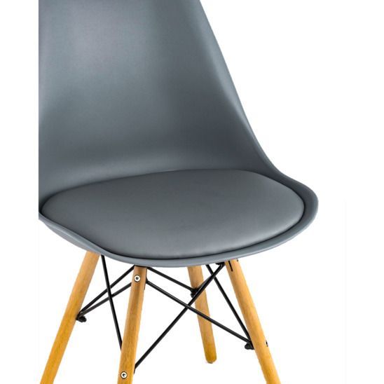 Ножки стула выполнены из неокрашенного массива бука. Натуральная древесина – прочный, экологичный материал, который со временем выглядит только лучше. Дополнительную просчность обеспечивает металлический каркас.