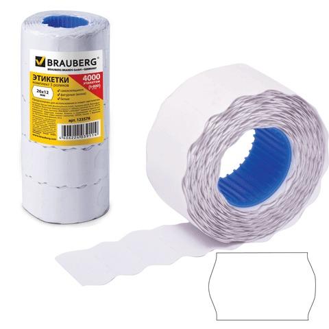 Этикет-лента 26х12 мм, волна, белая, комплект 5 рулонов по 800 шт., BRAUBERG, 123576
