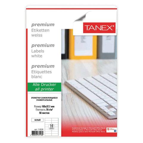 Этикетка самоклеящаяся 105х37,1 мм, 16 этикеток, белая, 70 г/м2, 50 листов, TANEX, 114534, TW-2105
