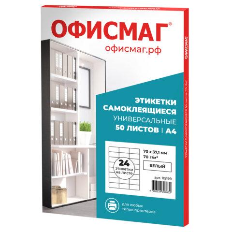 Этикетка самоклеящаяся 70х37,1 мм, 24 этикетки, белая, 70 г/м2, 50 листов, ОФИСМАГ, сырье Финляндия, 115199