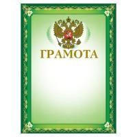 Грамота А4, мелованный картон, конгрев, тиснение фольгой, зеленая, BRAUBERG, 123061