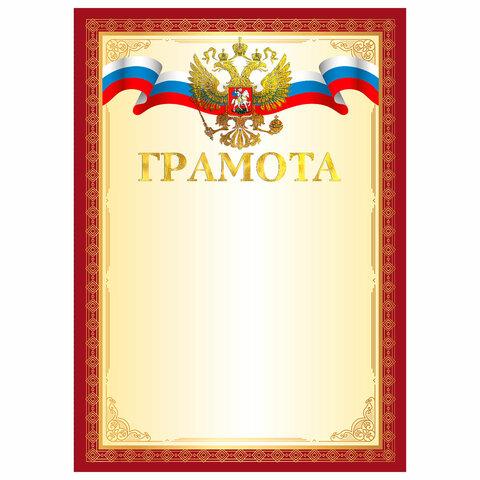 Грамота А4, мелованный картон, конгрев, тиснение фольгой, красная рамка, BRAUBERG, 117530